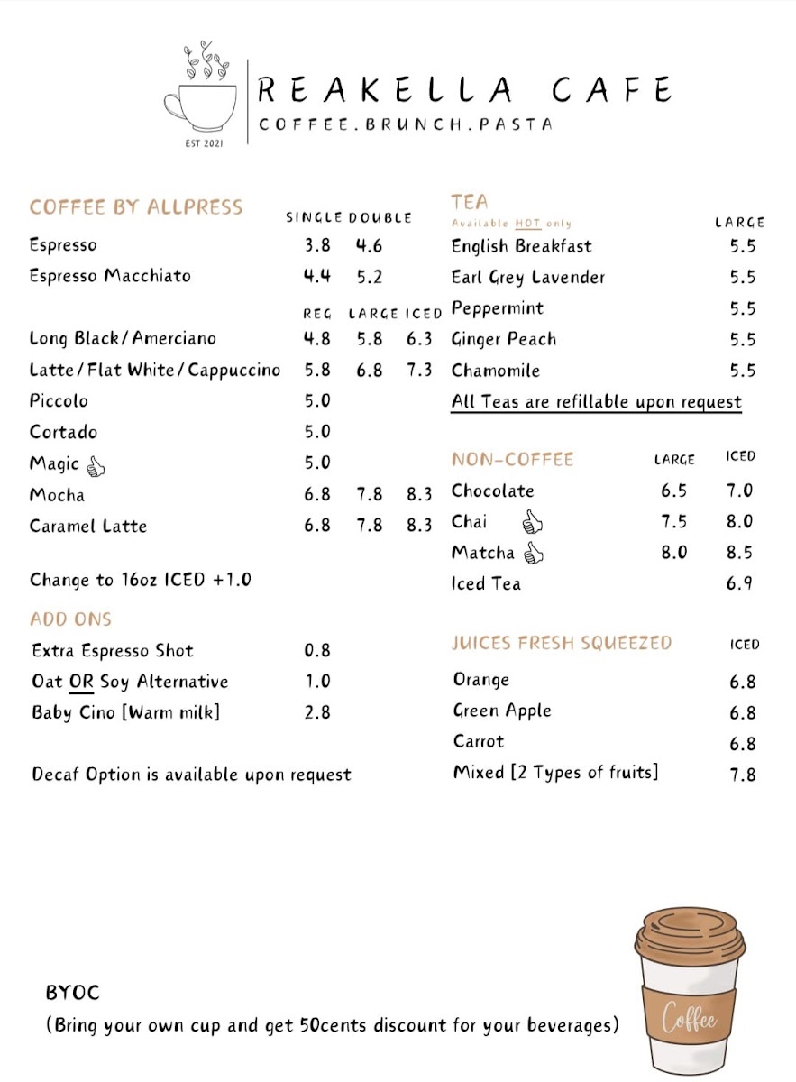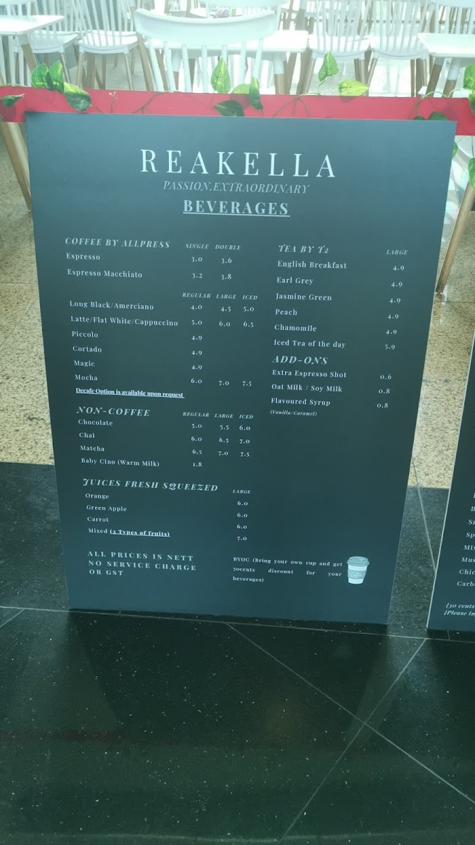 Reakella Cafe Menu